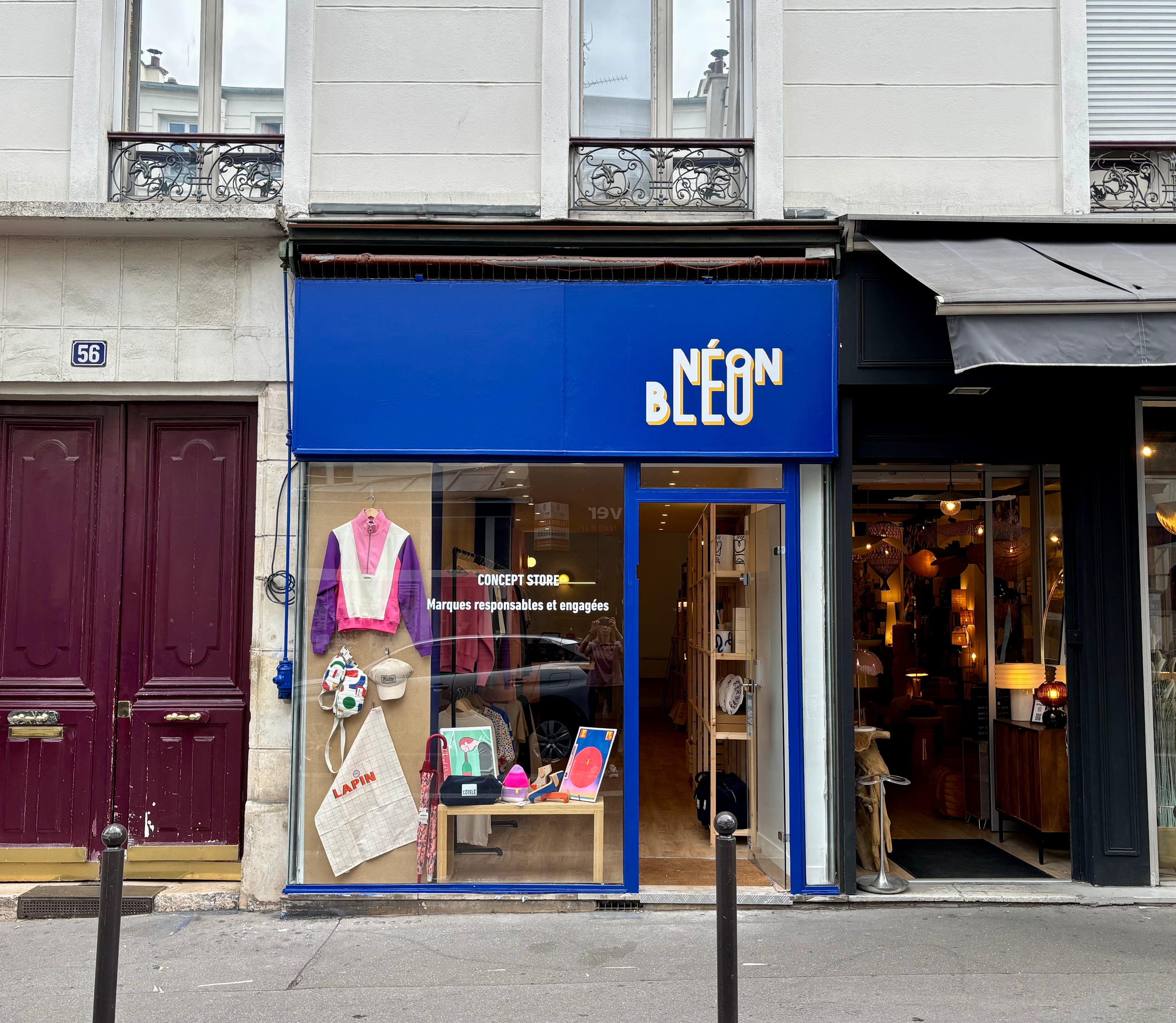 Installé au 56 rue des Batignolles à Paris, Le Néon Bleu est un concept store engagé qui met en lumière des créateurs responsables. Tous les produits sont conçus avec exigence, sens et style : certains sont fabriqués en France, d’autres en Europe, toujours en circuit court. Ici, vous trouverez des vêtements inclusifs, des objets du quotidien, de la papeterie inspirée ou des idées cadeaux, tous sélectionnés pour leur éthique, leur originalité et leur qualité 🤍