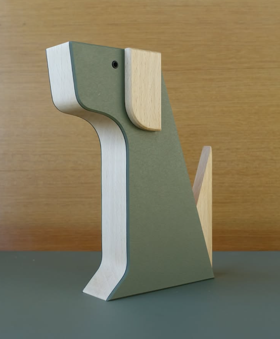Avec son pelage en linoléum coloré, différent sur chaque face, Fernand s’adapte à toutes les envies, s’intègre harmonieusement dans tous les intérieurs et impose sa présence tout en délicatesse. Affectueux, fidèle… et totalement sans entretien, ce compagnon en bois est aussi attachant que décoratif.